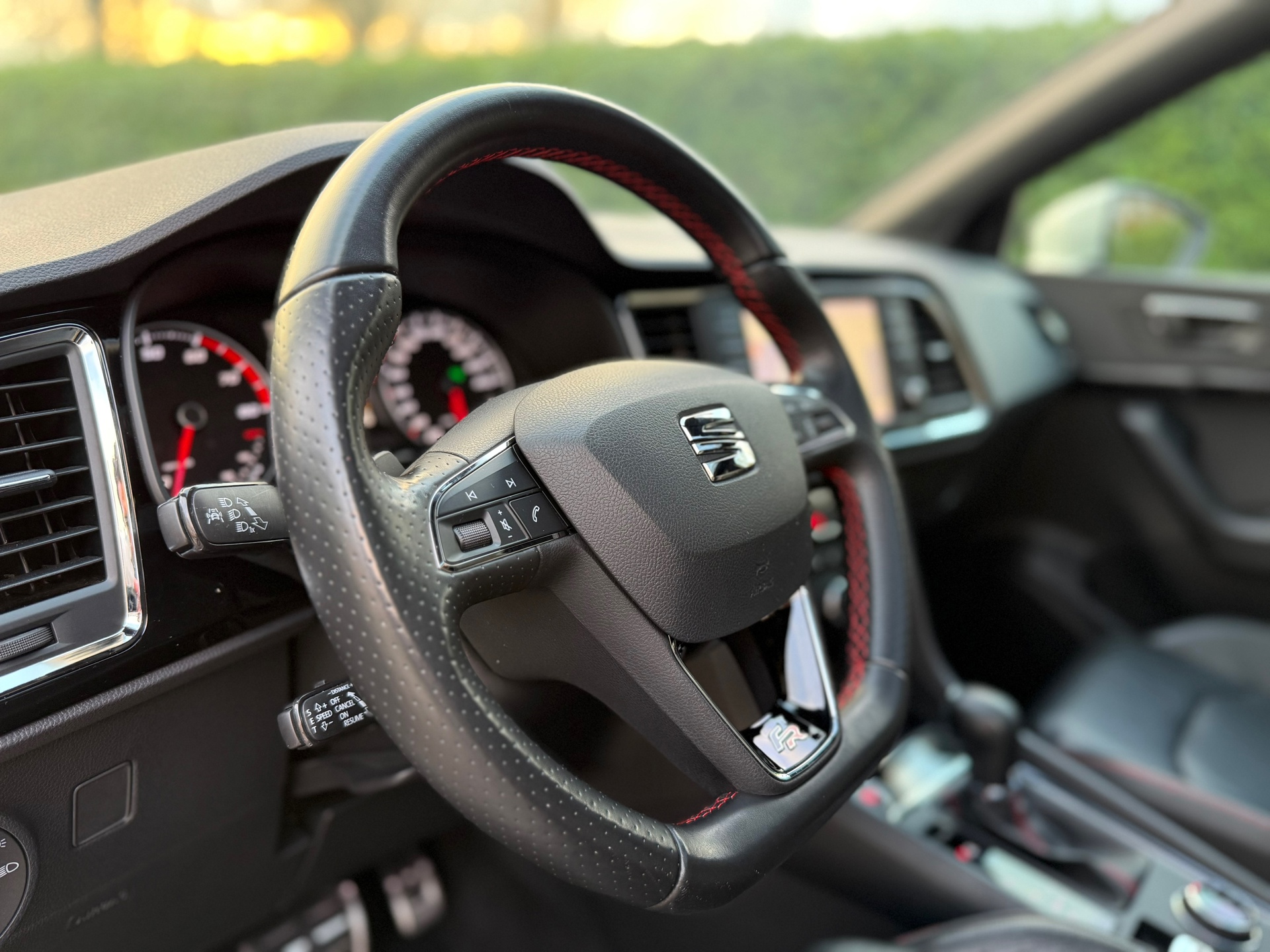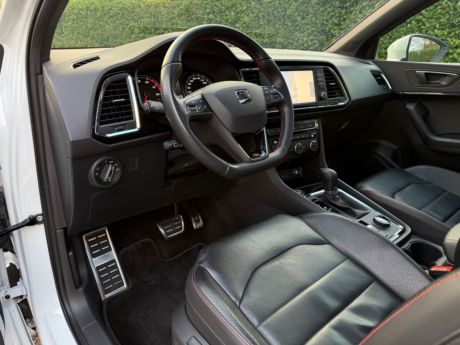 Functies activeren en storingen opsporen? Bij deze auto gaat het eenvoudig via uw smartphone. Overal en altijd. De kortste weg, de zuinigste weg, de snelste weg... elke weg is te vinden met het navigatiesysteem. Automatische airconditioning regelt volautomatisch de temperatuur. U kiest de gewenste temperatuur en het systeem doet de rest. Even muten, een andere zender of track kiezen? Geen gerommel, het gaat moeiteloos met de audiobediening op het stuur. De aanwezige parkeersensoren zijn de ultieme hulp om te laten weten hoeveel ruimte er nog is om te manoeuvreren. Ook is de Seat uitgerust met: sportstuur met schakelpaddels, regensensor, cruise control, buitentemperatuurmeter, automatisch dimmende binnenspiegel en centrale deurvergrendeling met afstandsbediening.