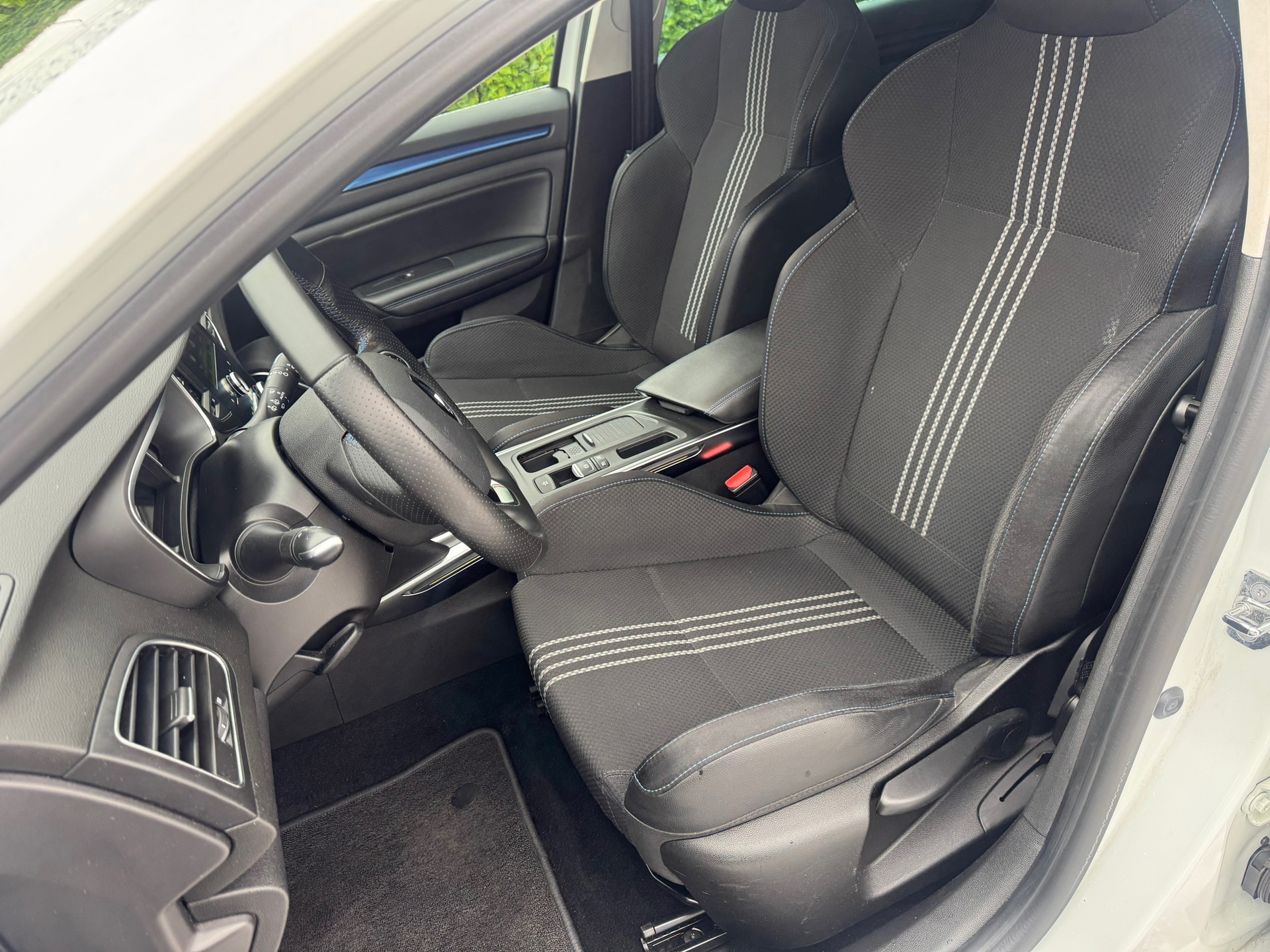 Zoals u mag verwachten van deze Renault Mégane Estate is hij uitgerust met een reeks aan actieve veiligheidssystemen. Onderweg zorgt verkeersborddetectie ervoor dat u geen waarschuwingsbord mist. Het Lane-keeping systeem garandeert dat u zich niet onverhoeds buiten de lijnen van de rijstrook begeeft. Stilstaan op een aflopend of schuin stuk weg? De hill hold control zorgt dat u probleemloos op uw plek blijft. En zodra u het gaspedaal activeert, rijdt u zo weg.